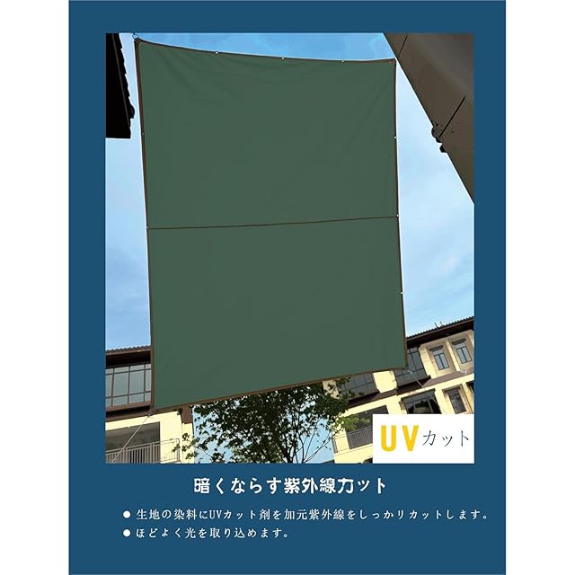 【高級素材を採用され】耐久性に優れた100%ポリエステル生地素材を採用され、 強力な縫い目と各コーナーの耐久性のあるステンレス鋼Dリング、四辺にアルミ製のハトメ付き、 設置簡単、紐6本で固定しやすい。コーナーごとにナイロンロープが付いています。