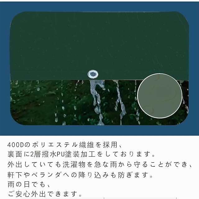 【防水機能が抜群生地】高品質防水ポリエステル生地とは風、熱、風邪、酸化、腐食および放射線に強いという生地です、防水加工があり、窓、庭、ベランダやその他室外によく使用されている。使わない時は折りたたんで収納できる。