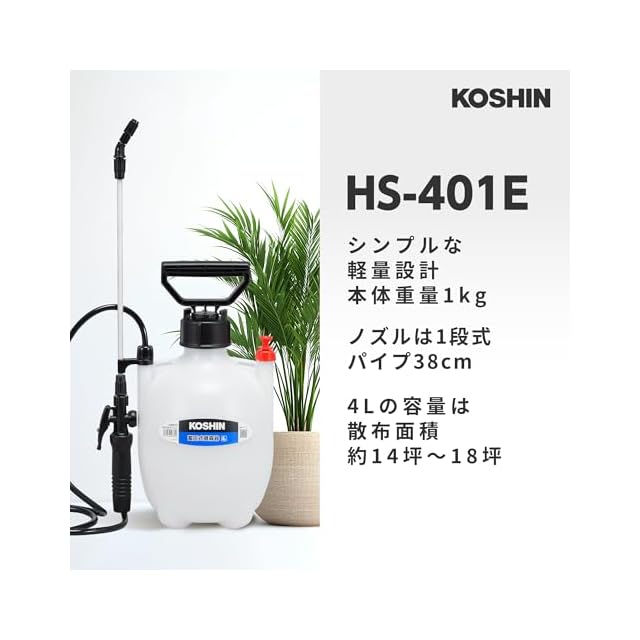 工進(KOSHIN) 蓄圧式 噴霧器 タンク 4L ミスターオート HS-401E 1段 ノズル 噴口 1個 防除 消毒 散布