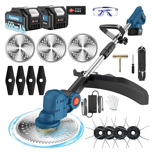 【多種類の刃が交換可能】アップグレードされたスチールブレードとナイロンコードカッター。kazeno充電式草刈り機には、厚いまたは密集した雑草を剪定するための230mmの大きな合金製のストレート刃が4枚装備されています、より効率的な切断のための大きな刃。4つのアップグレード版ナイロンカッターを装備した「Kazeno草刈り機」は、4本コードのナイロンカッターを搭載しています。このアップグレード版4本コードナイロンカッターは、従来の1本コードナイロンカッターに比べて作業効率が400%向上し、2本コードナイロンカッターと比較しても200%の効率アップを実現します。このナイロンカッターは、特に芝生の縁や狭いスペースでの作業に最適です。