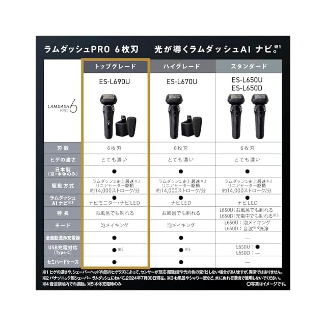 パナソニック シェーバー ラムダッシュ PRO 6枚刃 メンズ 電動 髭剃り ラムダッシュAI⁺ 全自動洗浄充電器 ES-L690U-K クラフトブラック