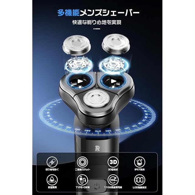 【2025新登場&回転式シェーバー】シェーバー メンズ 髭剃り 27枚刃 乾湿両用 ひげそり 360°回転式 電気シェーバー 低騒音 長持ちバッテリー 電動シェーバー ひげ剃り 深剃り IPX7防水 水洗い可 お風呂 type-c充電式 電気カミソリ 液晶画面 LCD残量表示 軽量 持ち運び便利 男性用 出張/旅行/車内常備/プレゼント 日本語取扱説明書付