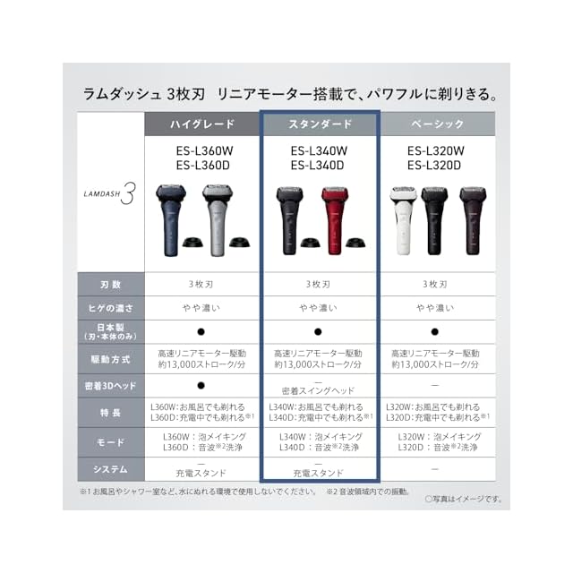 パナソニック シェーバー ラムダッシュ 3枚刃 電動 髭剃り メンズ 密着スイングヘッド ES-L340W-K 黒