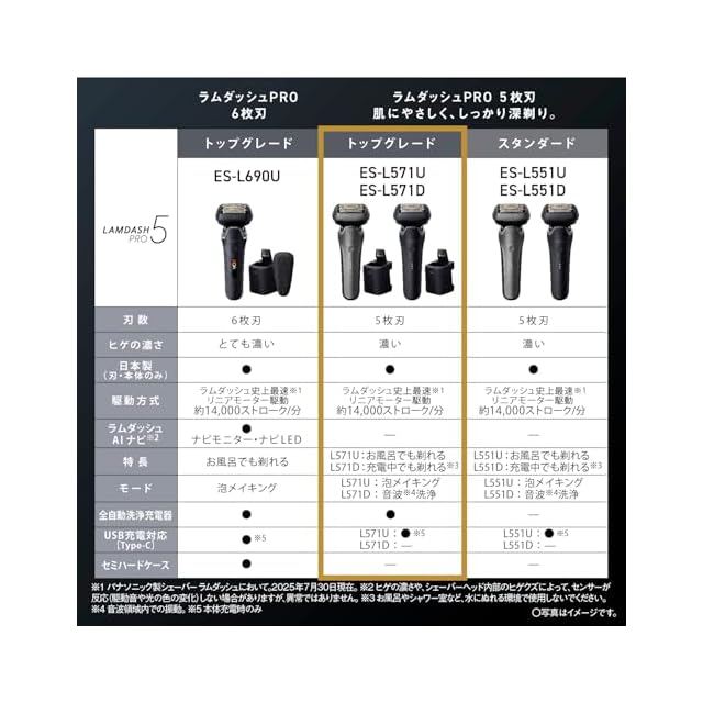 パナソニック メンズ シェーバー ラムダッシュ PRO 5枚刃 電動 髭剃り ラムダッシュAI⁺ 全自動洗浄充電器 ES-L571U-S チタンシルバー