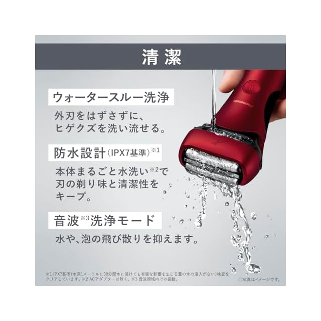 外刃をはずさずに、ヒゲクズを簡単に洗い流せる「ウォータースルー洗浄」搭載
