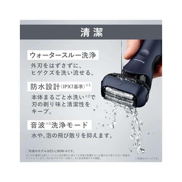 外刃をはずさずに、ヒゲクズを簡単に洗い流せる「ウォータースルー洗浄」搭載