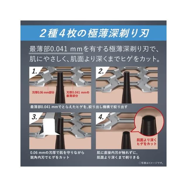 充電式。 本体サイズ(高さ×幅×奥行)167×72×59mm、重量200g、電圧切替え100~240V、海外対応可、充電時間約1時間、 使用日数1回3分約14日、洗浄タイプ水洗い、付属品レザーポーチ、専用オイル、掃除用ブラシ、ACアダプター