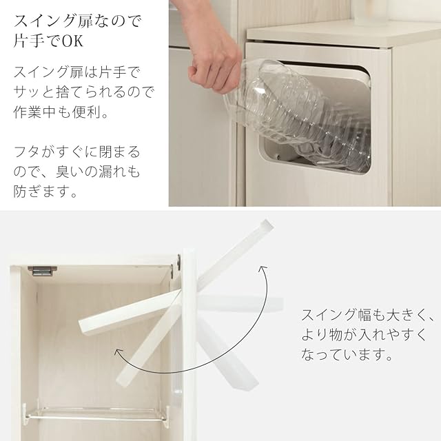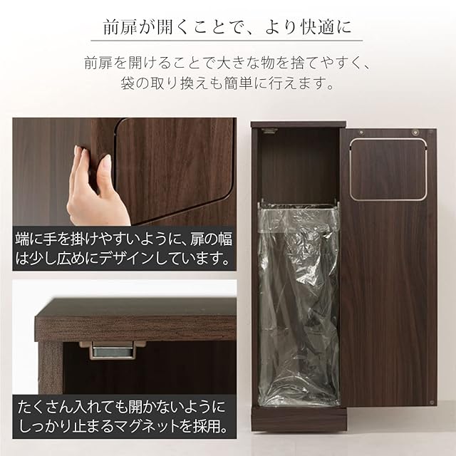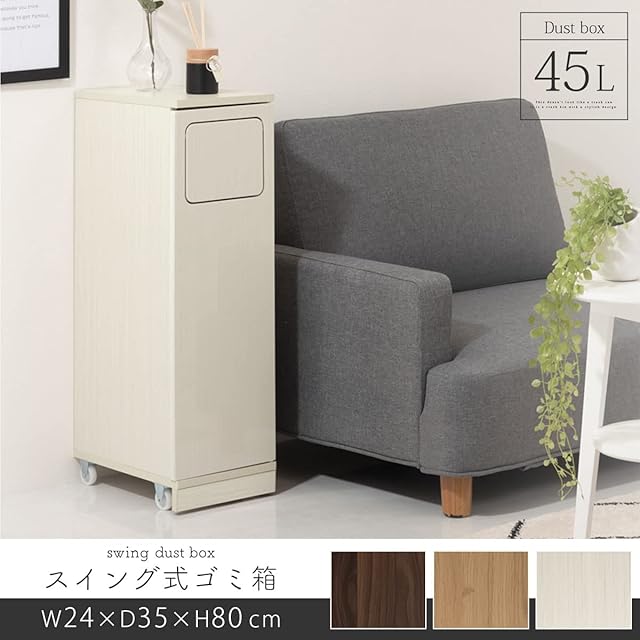 ぼん家具 ゴミ箱 スリム 45l ダストボックス スイング 幅24.4×奥行35.1×高さ80cm キャスター付き 縦型 木目 オーク