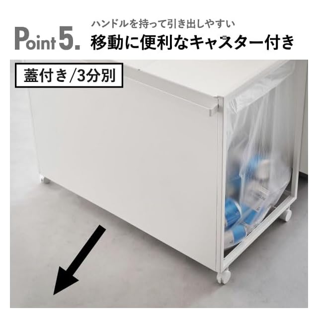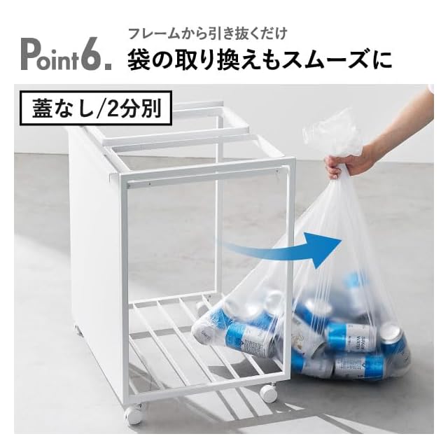 color:1.ホワイト style:【2分別】目隠し+蓋付き 45L: