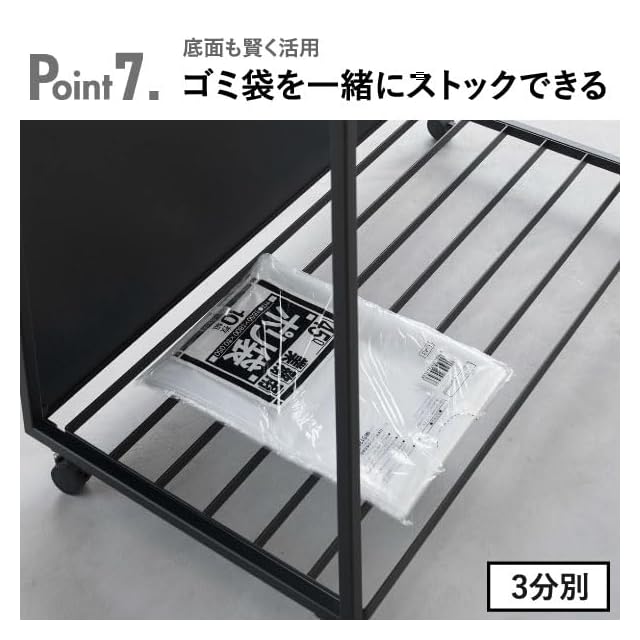 color:2.ブラック style:【3分別】目隠し+蓋付き 45L: