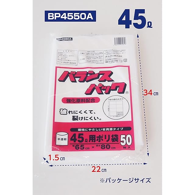 オルディ ゴミ袋 45L 半透明 50枚入×2 強化原料配合 破れにくい 裂けにくい バランスパック BP4550A