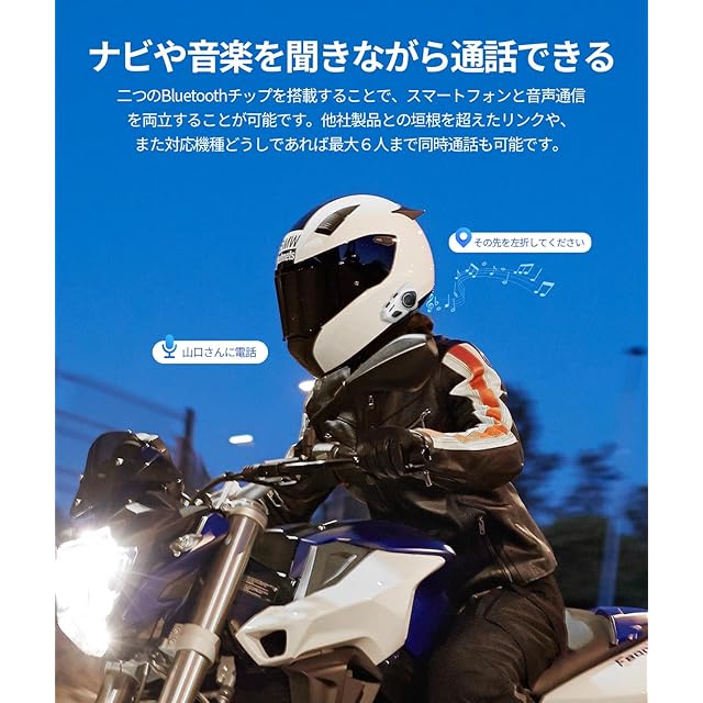 ✅【音楽ながら通話&音楽共有・ENC2.0&DSP&CVC8.0ノイズキャンセル】2枚Qualcommチップのおかげで、音楽、地図ナビアプリなどが再生中、同時にインカム通話対応なので、頻繁の操作を省き、ライディングに専念できます。音楽共有機能あり、恋人、夫婦、友人とか2人のライダーが走行中に同じ音楽を楽しむことができます。最新のENC2.0、DSPとCVC8.0三重騒音抑制技術を導入、2つ濾波器(ノイズフィルタ)備え、バイク用インカムのマイクが環境騒音を収集して対等の逆音波で騒音を抑制し、街の喧噪、通話エコー、風切り音やエンジンなどノイズを約90%以上除去できます。相手からの声や携帯電話からの音楽などが鮮明に聞こえ、この上クリアな音声を相手に伝えます。(※音楽共有距離は10M)