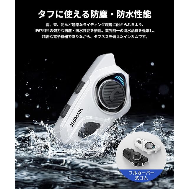 ✅【IP67防水防塵・押しやすいお大きボタン&Siri/音声アシスタント】IP67レベル防水防塵がインカムに備えており、従来品のゴムリングだけと異なり、特注インサート成形の内部器材を全部覆うゴムを採用しました。ゆえに、より強力な防水防塵効果をもたらし、走行中突然雨降っても心配する必要がりません。グローブを着装したまま使用する状況を考慮してバイク用インカムのボタンを大きく設計し、触感をよりはっきりさせ、いつでも簡単かつ迅速に操作できます。また、SiriとAndroidの音声アシスタント対応、電話ボタンを2回クリックしてスマホの音声アシスタントを呼び出すことができます。