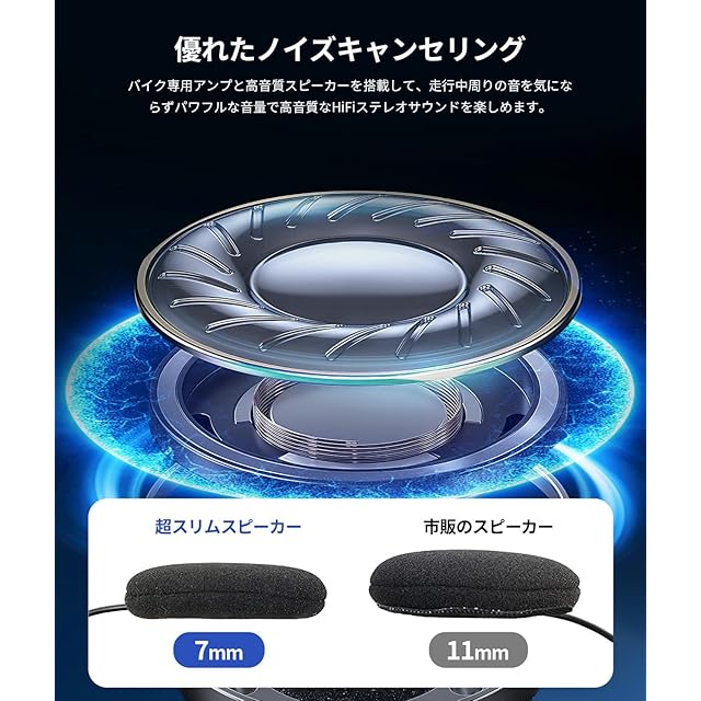 ✅【耳に快適7mmスピーカー・40mmドライバーで高音質】バイクインカム使用体験を向上させるため、たくさん調べを実行し、厚みわずか7mmのスピーカーを採用しております。普通の11mmスピーカーよりヘルメットの内部空間を占めず、耳へのストレスを減らし、長時間ライディングでも耳の痛みが大幅に軽減することができます。また、インカムのスピーカーは40mmダイナミックドライバー搭載、迫力のある低音から滑らかな中高音までバランス良いサウンドを再現、AAC、SBC規格も支持し、よりステレオの高音質を実現します。美妙なHIFI音楽とともに、長旅でも寂しくない。