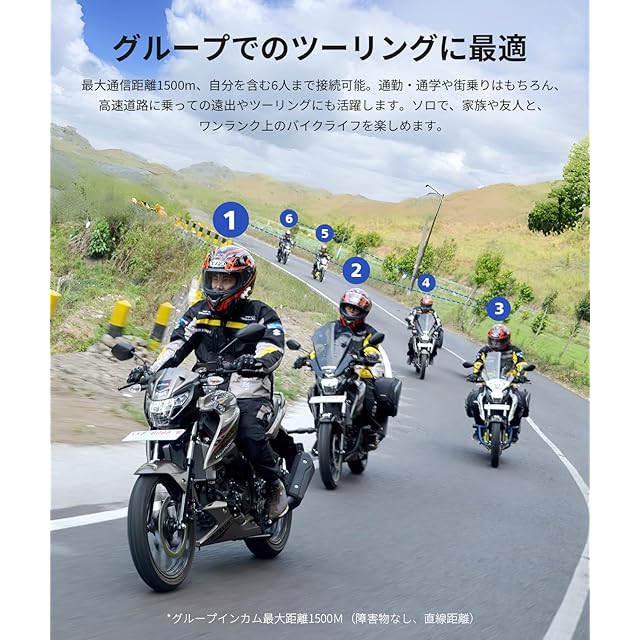 ✅【バイクインカムR16Pro進級の点】①FM機能:ソロツアーでも音楽中心の番組、ニュース、交通情報、スポーツ中継などお好みの番組に合わせて選択できます。(76~108MHz、日本現在94.9MHzまで開放されている)。②デュアルチップBluetooth 5.1:接続がより安定になります(R16は5.0+5.1)。③4種音質調整:デフォルト、低音、ロック、ポップ、お好みのタイプを選択できます。④快速充電:1.5時間満充電可能で充電を忘れても出かける前も余裕です(R16は2.5時間)。