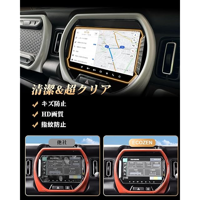 【97%の透過率、超高精細で裸画面のような滑らかな操作感】 はわずか0.25mmの超薄型設計されたECOZENの 新型 ハスラー 専用 ナビ 保護フィルム、貼り付けても存在感ゼロ。97%の透過率により、ナビ画面の鮮やかさをそのままに再現します。細かな情報までもクリアに表示され、運転中の視認性を向上させ、視界のぼやけによる事故を防ぎます。