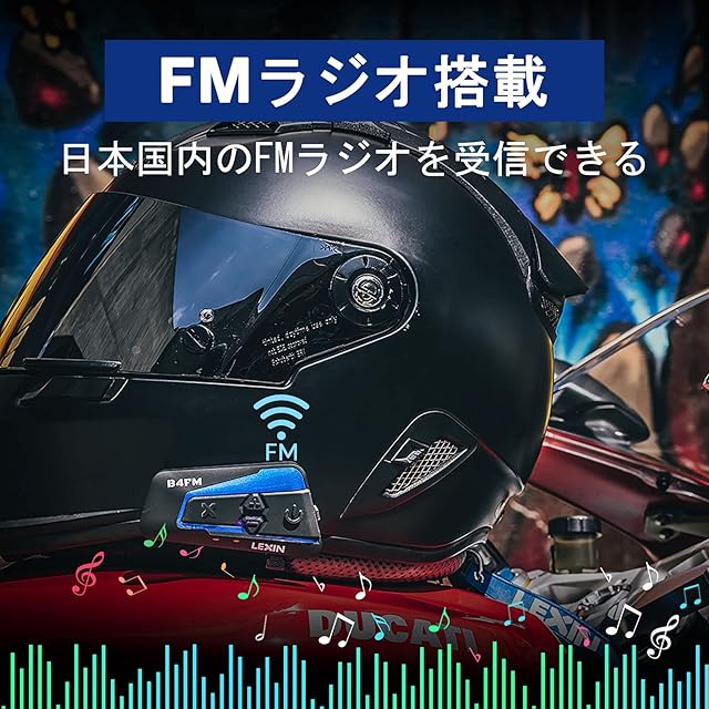 LX-B4FM バイク インカム 10riders 10人同時通話 FMラジオ Bluetooth防水インターコ 音楽共有 バイク用インカム スマホ音楽再生 Siri/S-voice IP67防水 無線機いんかむヘルメット用インコム 連続21時間長時間通話 インカムバイク 2種類マイク 日本語取扱 認証済み