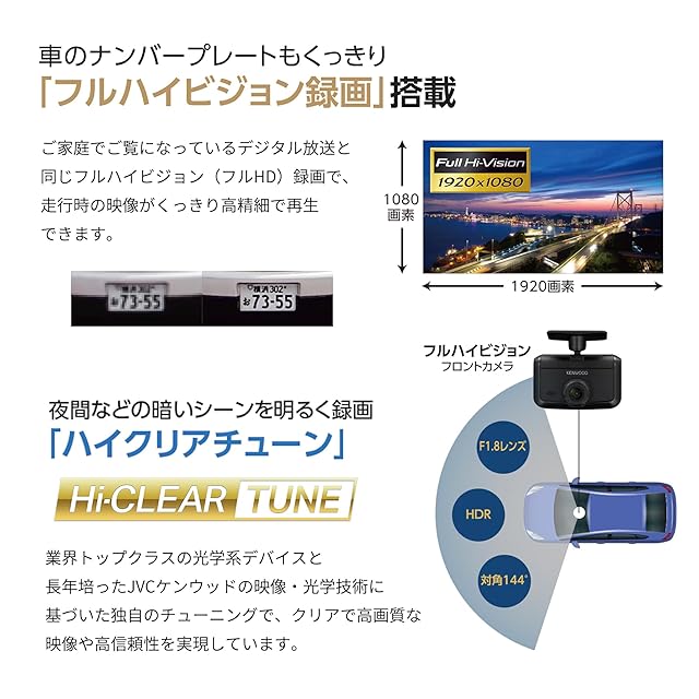 ケンウッド(Kenwood)前方撮影ドライブレコーダー DRV-R30S 3年 日本製 HDR搭載 昼夜問わず鮮明な録画を実現