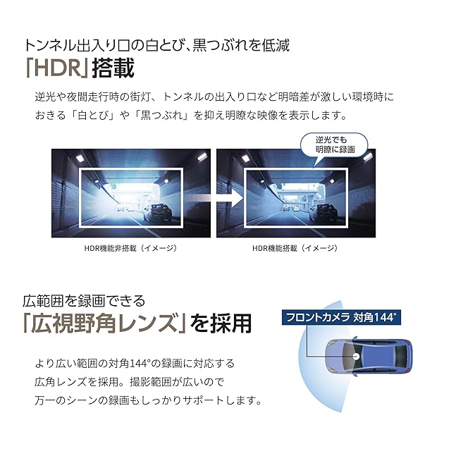 HDR 機能を搭載、トンネルの出入り口など明暗差の激しいシーンで安定した録画が可能