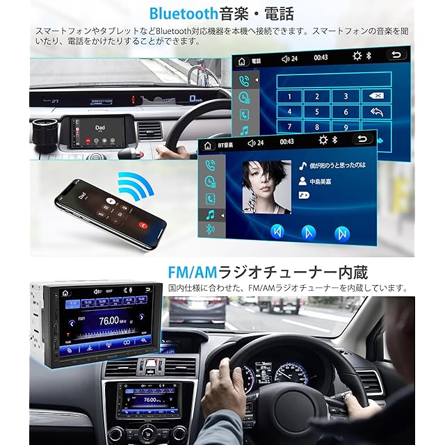 【様々な便利な機能搭載】①映像・音声入力端子を装備:背面に1系統のRCA映像・音声入力端子を装備しており、オーディオ機器などを接続することができます。 ②FM/AMラジオチューナーを内蔵:国内仕様に合わせたFM/AMラジオチューナーを内蔵しています。 ③Bluetooth接続対応:スマートフォンやタブレットなどBluetooth対応機器を本機に接続できます。スマートフォンの音楽を聴いたり、電話をかけたりすることができます。 ④USB/SDメモリーに保存された様々な動画・静止画・音楽を楽しめます。 ⑤車のスピーカーに接続:カースピーカーからの音声もバッチリ!音楽も映画も大迫力で楽しめます。