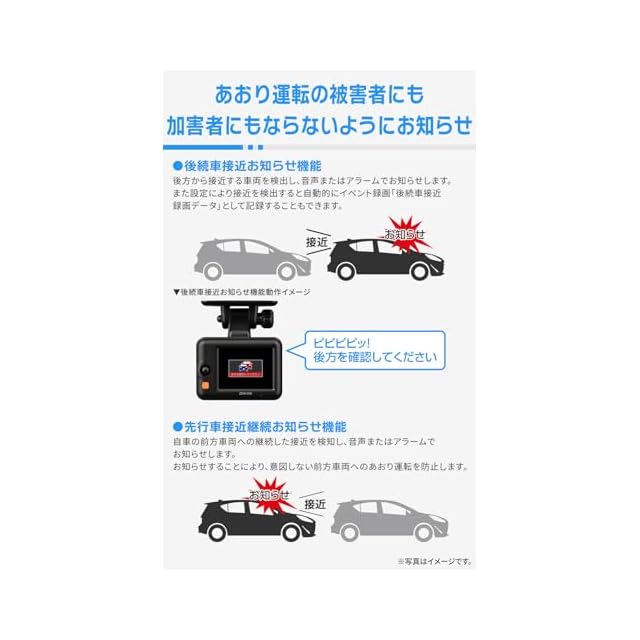 後続車接近お知らせ機能搭載。車両後方に車が接近してきていることをお知らせすることで、煽られていることに気付かずトラブルになることを未然に回避します。