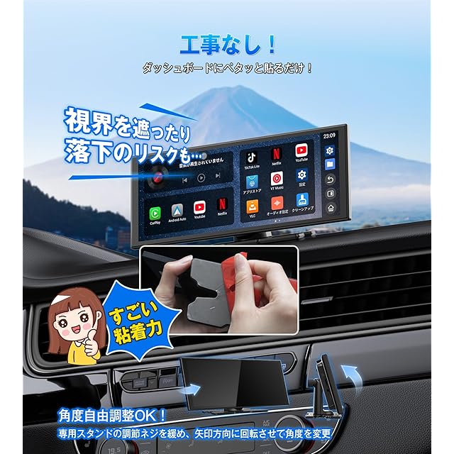 【オットキャスト最新モデル!11.4インチ理想サイズで映像もナビも快適に】 2025年の最新作「ScreenFlow」は、持ち運びしやすいポータブル設計ながら、11.4インチという“大きすぎず小さすぎない”理想サイズを実現。車内でも視認性抜群で、ナビ画面がくっきり見やすく、動画や映画、音楽PVなどのエンタメコンテンツも迫力の映像で楽しめます。1920×720の高解像度ディスプレイが、運転中でも鮮明な画質を提供し、ドライブの質を格段に向上。取り付けはダッシュボードに置くだけ、面倒な施工は不要で、初心者でも3分で設置完了!