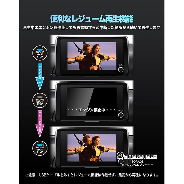 ●レジューム機能対応:改良版2025モデル新機能!再生中にエンジンを停止しても、再始動すると続きから再生いただけます。*USBケーブルを外すとレジューム機能は作動せず、最初からの再生になります。