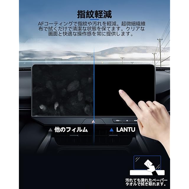 【高透過率・指紋や汚れ軽減】96%以上驚きの透過率をもち、液晶画面を守りながらスクリーン元々の鮮やかな画質を損なわなく、そのままに楽しみます。フィルムの表面に撥水撥油防汚機能があるため、指紋や汚れが付着しにくくなり、日常のディスプレイオーディオの使用中、指紋や汚れの跡が画面に付着した場合にも、湿らせたペーパータオルで簡単に拭き取ることができます