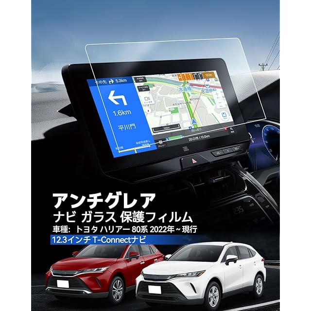 【対応車種】トヨタ ハリアー 80系 Z/Z“Leather Package” 2022 2023 12.3インチ T-Connectナビ 【パッケージ内容】:反射防止ガラスフィルム1枚、クリーニングキット(ウェットワイプ、クリーニングクロス、ホコリ除去シール)