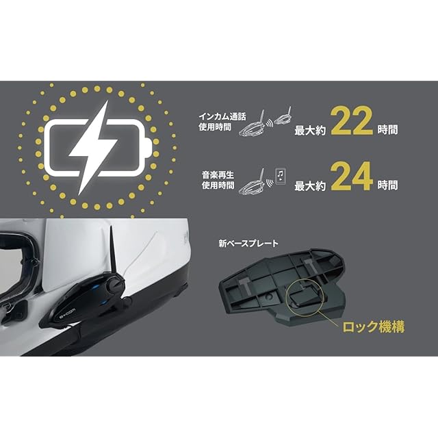インカム通話使用時間:最大約22時間 / 音楽再生使用時間:最大約24時間