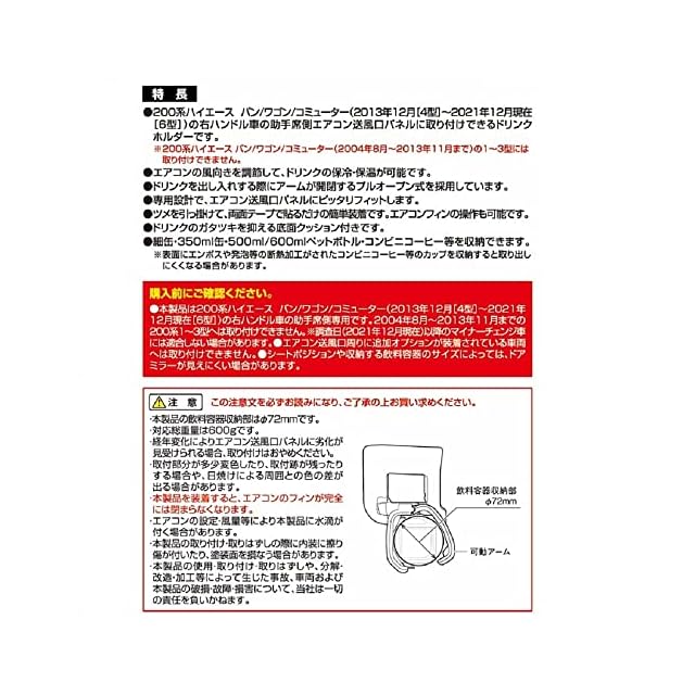 槌屋ヤック(Tsuchiya Yac) 車種専用品 トヨタ 200系 ハイエース専用 エアコン ドリンクホルダー 助手席用 ブラック/シルバー 180×200×130mm SY-HA3
