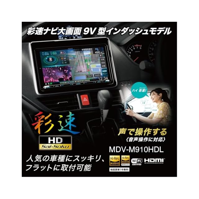 ケンウッド(KENWOOD) カーナビ 彩速 9インチ MDV-M910HDL 安心の日本製「音声操作に対応」 ワイヤレスミラーリング対応 インダッシュ ブラック