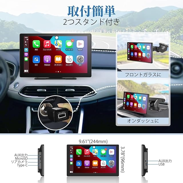 【9インチ・IPSモニター搭載・ポーダブルで取付簡単】IPS液晶タッチパネルを採用して、縦高が5.36″に上がって、9インチ大画面でより簡単かつスムーズな操作が可能になります。走行中にナビ地図の拡大と縮小、音楽再生時に曲の再生や停止など、すべて直感的に操作します。スマホより、地図や情報を見やすく、動画の視聴も臨場感を楽しむことができて、ストレスフリーなドライブを実現されます。ポータブルタイプで専門的な知識や工事費用が不要、貼り付けるだけで初心者も簡単に取り付けます。車両を変更する必要がある場合でも、簡単に移動することができます。ディスプレイオーディオを備えない車種にコスパの高い選択です。