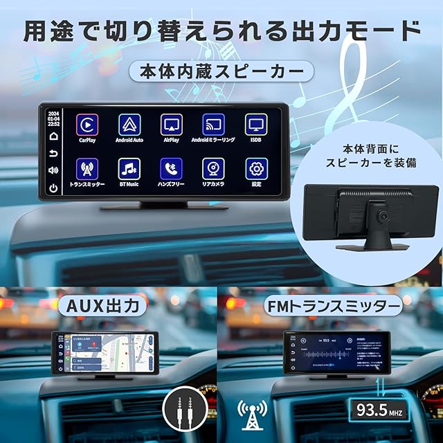 【音声操作でハンズフリー】 SiriやGoogleアシスタント対応で話しかけるだけで、地図のルート案内、電話の発信・受信、メッセージの送受信、音楽の再生などを簡単に操作できます。いつでも最新のMAPをナビゲーションアプリケーション(Google Maps、Apple Maps、Yahooカーナビなど)で確認でき、純正ナビの更新料も不要です。運転中でも手を使わずに音声で操作できるため、より安全に運転に集中することができます。さらに、Bluetooth接続、AUX入力、FM送信機能にも対応しており、様々な音声出力方法でお楽しみいただけます。