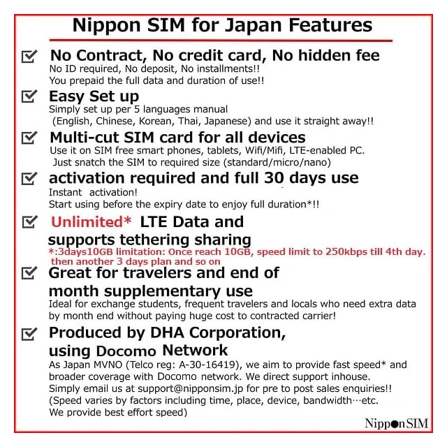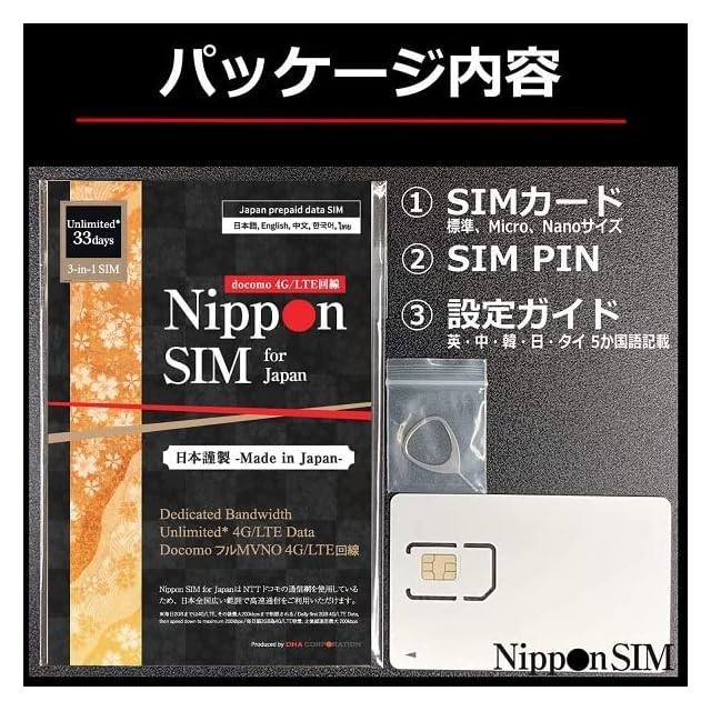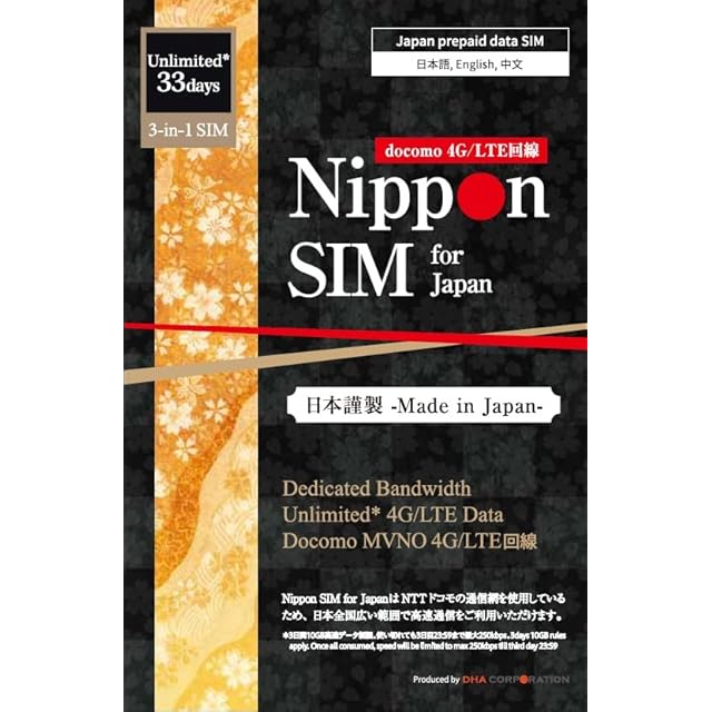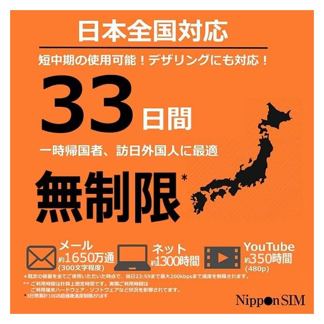 プリペイドsim 日本 33日間 無制限(3日間累計10GB超過後速度制限あり) 純正ドコモ simカード | simピン付 | データ通信専用 | 5G/4G/LTE回線 | Wifiルーター対応 | テザリング可 | simフリー端末対応 | ドコモロック端末対応 | 多言語マニュアル付