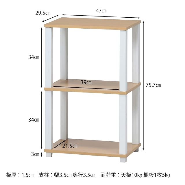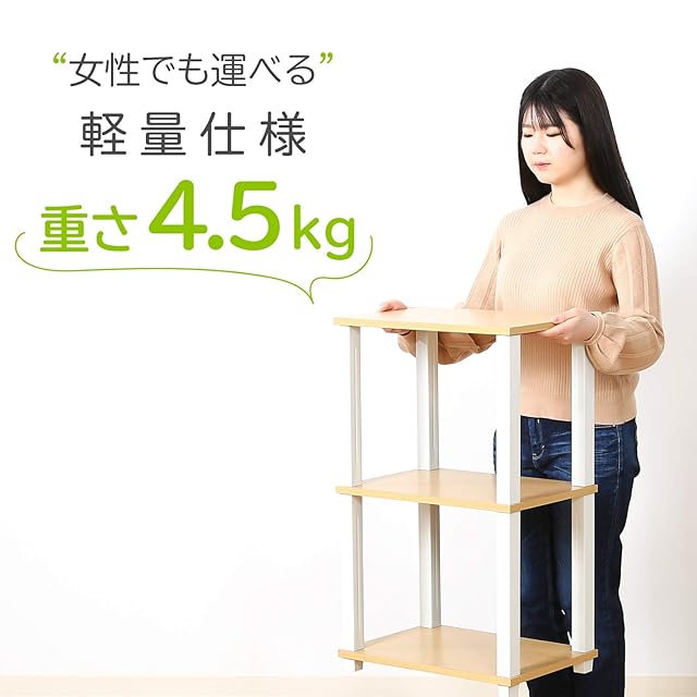 不二貿易(Fujiboeki) オープンラック シェルフ 3段 幅47×奥行29.5×高さ75.7cm ナチュラル ホワイト 軽量 工具不要 組立商品 フィット 99771