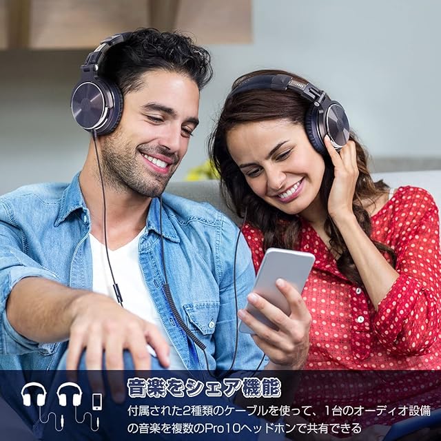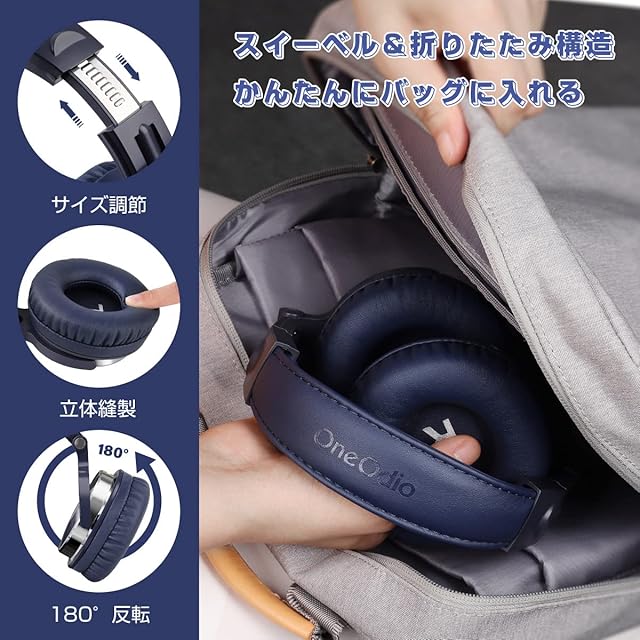 OneOdio Pro10 ヘッドホン有線 50mm ドライバー 3.5mm/6.35mm両対応 ハイレゾヘッドフォン 折りたたみ式 モニター/DJ/ゲーム/DTM/楽器練習 着脱式 ケーブル2本付き