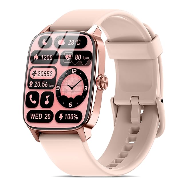 商品名:スマートウォッチ iPhone対応 アンドロイド対応 Bluetooth5.3通話機能 Line/X/SMSメッセージ通知 音声アシスタント 1.85インチ超精細画面 200+文字盤 100+運動モード IP68防水 バンド交換可能 カメラ制御 音楽再生 天気予報 長持ちバッテリー 軽量 薄型 メンズ レディース (ピンク)