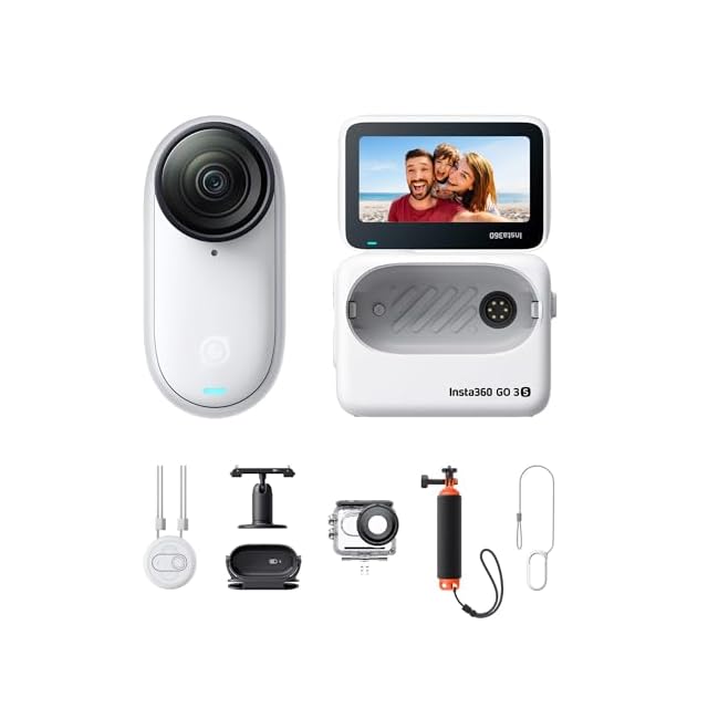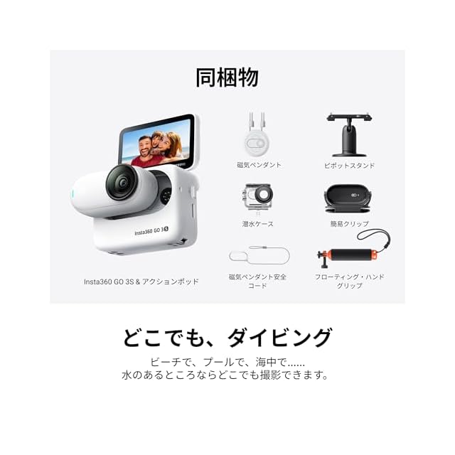 Insta360 GO 3S - 4K小型ウェアラブルVlogビデオカメラ、ハンズフリーPOV、どこでもマウント、手ブレ補正、バッテリー寿命140分、10m防水、AI編集、Apple Find My対応、Vlog/旅行/アウトドア/ペットPOV用 ウォータースポーツキット - 128GB