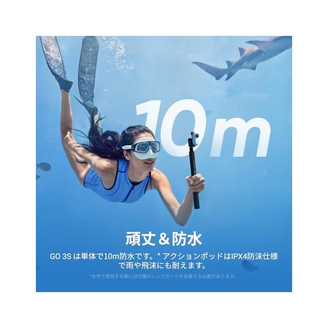 頑丈&防水 - IPX8防水仕様のGO 3SとIPX4防滴仕様のアクションポッドで水中の瞬間を簡単に撮影。潜水ケースを使えば水深60mまで潜れます。
