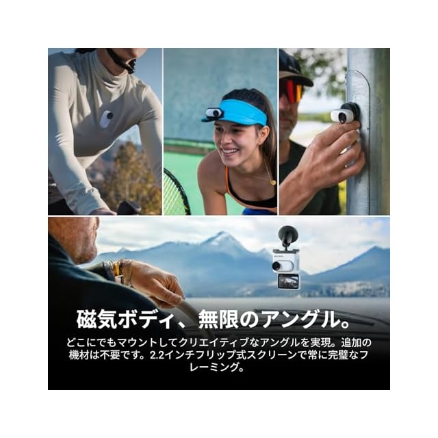 どこにでも取り付けられる - マグネット式のデザインと便利なアクセサリーの数々で、他のカメラでは不可能なアングルでクリエイティブな撮影ができます。小型であるからこそのメリットです。