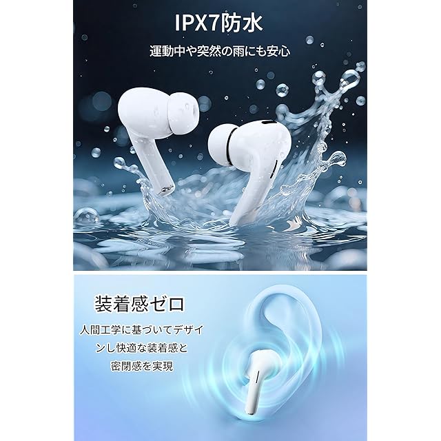イヤホン Bluetooth ワイヤレスイヤホン 【タッチスクリーン & ANCノイズキャンセリング】 ブルートゥース コードレス 耳検出 イコライザー設定 マイク付き AI知能通話 40時間再生 防水IPX7 小型 ゲームモード 紛失探し 通勤/通学/ランニング スマホ iphone/Android対応 (ホワイト)