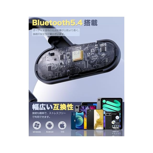開放型空気伝導で、耳を塞がず快適な音楽体験:【耳を塞がない】従来の骨伝導イヤホンとは異なり、耳を完全に開放する空気伝導技術を採用。耳への圧迫感や骨振動による違和感を一切感じず、長時間の音楽鑑賞や通話でも疲れにくい設計です。【超軽量】わずか20gの超軽量ボディが耳への負担を軽減し、通勤ラッシュ時の長時間使用やオフィスでの集中作業でも、快適な装着感をキープ。【環境音感知】耳を塞がないため、周囲の環境音も自然に聞こえ、街歩きやジョギング時の安全性も確保。「音楽を楽しみながらも、周りの音に気づける」 という、従来のイヤホンでは実現できなかった新しい聴覚体験を提供します。
