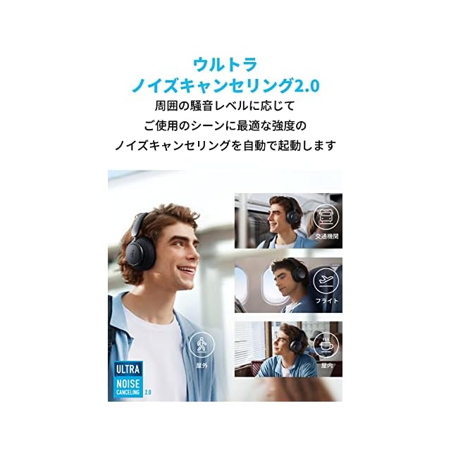 ウルトラノイズキャンセリング 2.0:周囲の騒音レベルに応じてご使用のシーンに最適な強度のノイズキャンセリングを自動で起動します。