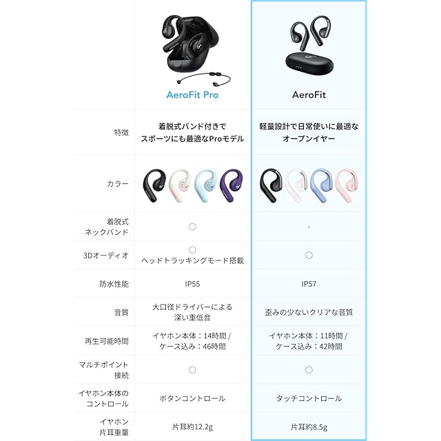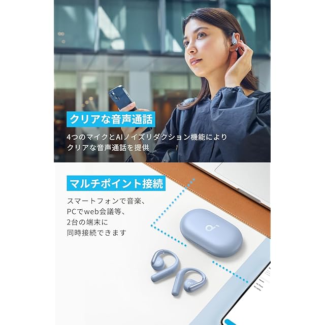 Anker Soundcore AeroFit (Bluetooth 5.3)【オープンイヤー型ワイヤレスイヤホン/IP57防塵防水規格/最大42時間再生/マルチポイント接続/PSE技術基準適合】 グレイッシュブルー