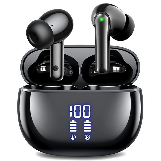 イヤホン bluetooth ワイヤレスイヤホン 【2025年 ENCノイズキャンセリング】 ブルートゥース Bluetooth5.3 自動ペアリング LEDディスプレイ搭載 最大48時間再生 マイク付き ENC搭載 Type-C充電 タッチ操作 軽量/小型 IPX7防水 片耳/両耳対応 スポーツ/音楽/通勤/通学 (ブラック)