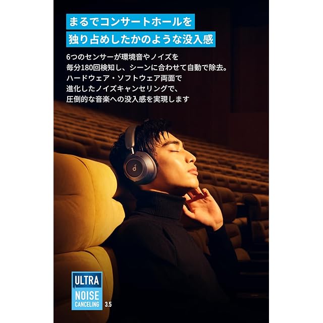 ウルトラノイズキャンセリング3.5:周囲の騒音レベルに応じてノイズキャンセリングの強さを自動で調節します。電車内やカフェなど、コンサートホールを独り占めしたかのような、没入感を。