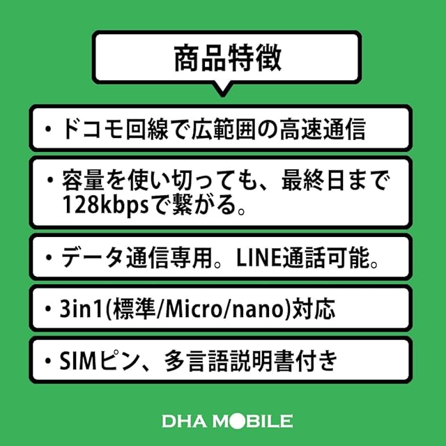 【面倒な契約なし!サポートも充実】アクティベーション、個人認証、クレジットカード登録、契約、事務手数料等は一切不要です。株式会社DHA Corporationは日本のMVNO(仮想移動体通信事業者、届出番号A-30-16419)です。販売からサポートまでを一貫して提供しており、日本語/英語/中国語でのサポートを行っております。商品や設定方法などについてわからないことがございましたら遠慮なくご連絡ください。