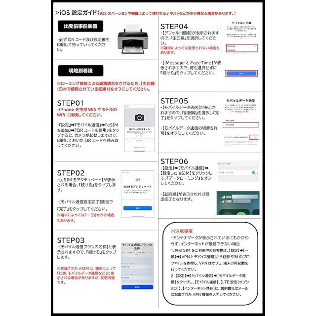 【簡単設定】基本設定不要、現地到着後QRコードを読み込み、ローミングをオンにするだけです。端末と国によって、一部APN設定が必要な場合があります。※格安SIMでiPhoneをご利用のお客様でご利用できない場合(LTE信号があるですが、通信はできない)は、格安SIMの構成プロファイルを削除してください。
