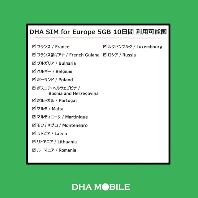 【対応国一覧】アイスランド、アイルランド、アルバニア、イギリス、イタリア、ウクライナ、エストニア、オーストリア、オランダ、キプロス、ギリシャ、グアドループ、クロアチア、ジブラルタル、スイス、スウェーデン、スペイン、スロバキア、スロベニア、セルビア、チェコ共和国、デンマーク、ドイツ、ノルウェー、ハンガリー、フィンランド、フェロー諸島、フランス、フランス領ギアナ、ブルガリア、ベルギー、ポーランド、ボスニア・ヘルツェゴビナ、ポルトガル、マルタ、マルティニーク、モンテネグロ、ラトビア、リトアニア、ルーマニア、ルクセンブルク、ロシア
